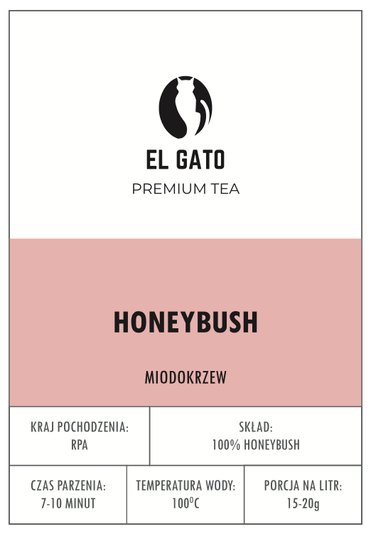 Dziko rosnący Honeybush, zbierany ręcznie w Republice Południowej Afryki. Słodki i pełny w smaku, o miodowym zapachu i jasnym, bursztynowym kolorze naparu.